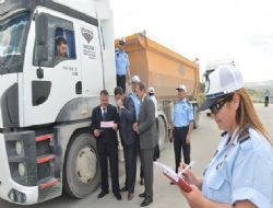 ANKARA / Büyükşehir Belediyesi Zabıta Daire Başkanlığı Çevre Denetim Merkez Amirliği tarafından yapılan denetimlerde, ağır tonajlı araçlar kurallara uygunluk bakımından kontrol ediliyor. Hafriyat kamyonu, mıcır kamyonu, beton mikser, TIR gibi ağır tonajlı araçların ruhsat, sevk irsaliyesi olup olmadığı araştırılıyor, araçların taşıdığı yükün branda ile örtülü olması, tekerleklerin çamurlu olmaması yönünde uyarılarda bulunuluyor.