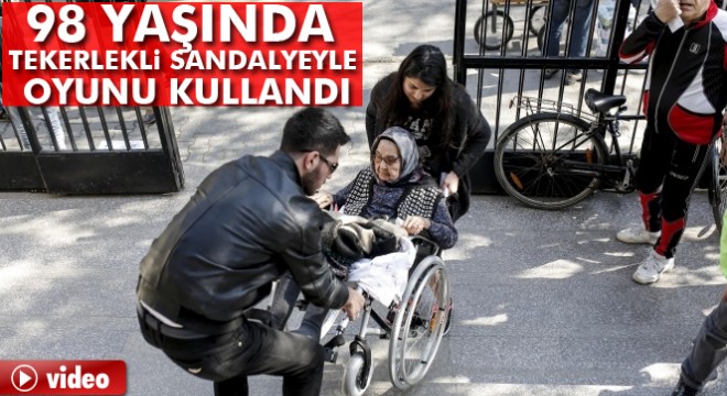98 yaşındaki Hayriye Solak, tekerlekli sandalye ile geldiği okulda oyunu kullanarak vatandaşlık görevini yerine getirdi.