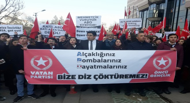Vatan Partisi Öncü Gençlik üyesi bir grup, ABD Büyükelçiliği karşısında Kayseri’de yaşanan bomba yüklü araçla terör saldırısını protesto etti.