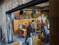 ANKARA / Ankara Adliyesi’nde yan yana bulunan 10. ve 11. Ağır Ceza Mahkemeleri arasındaki duvar yıkılarak, büyük bir duruşma salonu oluşturulacak. Proje kapsamında yan yana bulunan 10. ve 11. Ağır Ceza Mahkemeleri arasındaki duvarın bir bölümü yıkıldı. Yıkılan kısmın yerine büyük ve sürgülü bir paravan yapılacak. Kalabalık duruşmalarda paravan açılarak daha büyük salon kullanılacak. İnşaat çalışmalarının üç hafta içinde tamamlanmasının planlandığı ifade edildi.