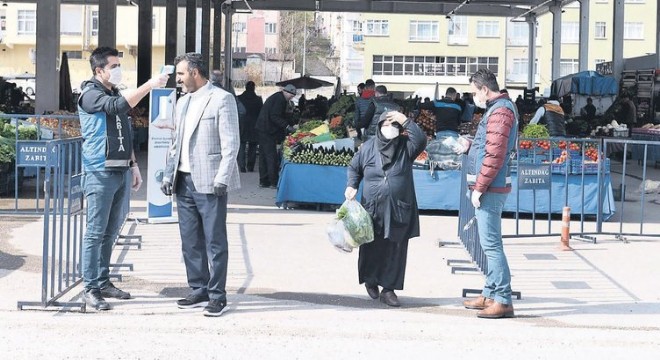 Altındağ Belediye Başkanı Asım Balcı'nın talimatı ile Altındağ'daki pazar yerleri kısa sürede İçişleri Bakanlığı tarafından gönderilen genelgeye göre düzenlendi. İçişleri Bakanlığı'nca yayımlanan ek genelgeye göre, pazar yerlerine kontrollü giriş ve çıkışları sağlamak için belirlenen yerler haricinde diğer tüm alanlar, demir bariyer ve benzeri araç gereçle kapatılarak kontrolsüz giriş ve çıkışlar engellendi. Gereken tüm hijyen önlemlerinin de hayata geçirildiği pazar yerlerinde ayrıca pazar esnafının ateşi de ölçüldü. Pazar yerine kontrollü giriş ve çıkışları sağlamak için belirlenen giriş ve çıkışlar haricinde diğer tüm alanları demir bariyer ve benzeri araç gereçle kapatarak kontrolsüz giriş ve çıkışları engellediklerini vurgulayan Altındağ Belediye Başkanı Asım Balcı, "Pazar yerlerimizdeki tezgahları, araları en az 3 metre olacak şekilde yerleştirdik. Pazar alanına içerideki esnaf sayısının en fazla 2 katı kadar vatandaş alıyoruz. İçeride sürekli aynı sayıda vatandaşın bulunması sağlamaya özen gösteriyoruz. Zabıta ekiplerimiz bu konularla ilgili olarak sürekli denetimde, 24 saat görev başında. Pazar kurulduğu gün pazar esnafına ve vatandaşlara ateş ölçümü de yapılacak. Bugün semt pazarımızda esnaflarımıza ve hemşehrilerimize ateş ölçümü de yaptık. Esnaflarımız uygulamamızdan çok memnun kaldı. Her şey korona virüsle mücadele için her şey halk sağlığı için" ifadelerini kullandı.