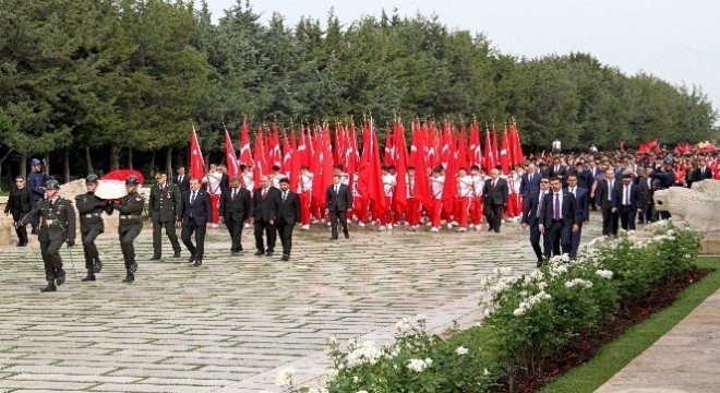 Anıtkabir’de düzenlenen tören, saat 09.00’da Gençlik ve Spor Bakanı Osman Aşkın Bak başkanlığındaki gençlik heyetinin Aslanlı Yol’dan yürüyüşüyle başladı. Bakan Bak’ın mozoleye çelenk bırakmasının ardından saygı duruşunda bulunuldu ve İstiklal Marşı okundu. Daha sonra Misak-ı Milli kulesine geçen Bakan Bak, Anıtkabir Özel Defteri’ne şunları yazdı: