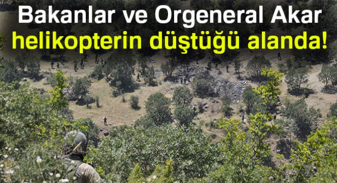 Bakanlar ve Orgeneral Akar helikopterin düştüğü alanda