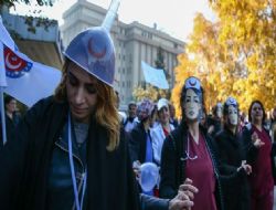 "Bir yılda 72 milyon müracaatın olduğu ve 3'üncü basamak olarak hastaların tedavisinin yapıldığı üniversite hastanelerinde sadece 22 bin hemşire ile hizmet yürütmek demek, bu arabanın yakın zamanda duvara toslayacağını ilan etmektir." görüşünü dile getirdi. Hemşireler, taktıkları maskeler ve hunilerle halay çekti.