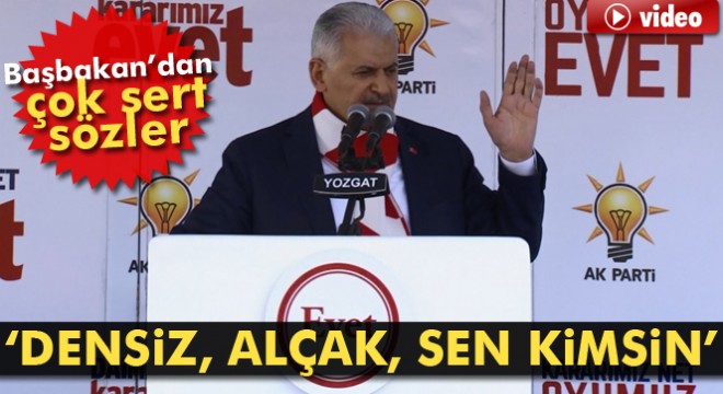 Başbakan Yıldırım, CHP Milletvekili Hüsnü Bozkurt’un “referandumda ’evet’ çıkarsa hepinizi denize dökeriz" sözüne de sert tepki göstererek, “Densiz, alçak, sen kimsin bu milleti böyle tehdit ediyorsun” dedi.