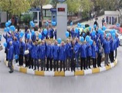 Hastane bahçesinde toplanan diyabetli hastalar ve yakınlarıyla doktorlar, Diyabet Günü’nün simgesi olan mavi halkayı oluşturmak için mavi yağmurluklar giydi. El ele tutuşarak halka oluşturan doktorlar ve hastalar, mavi balonlar da uçurdu.
