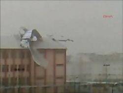 Ankara'da lodos fırtınası etkili oldu. Fırtına nedeniyle Gazi Üniversitesi Endüstriyel Sanatlar Eğitim Fakültesi'nin çatısı uçtu. Çatının uçması sırasında yoldaki otomobil sürücüsü uçan çatıyı son anda farkederek kurtuldu. Olayda şans eseri yaralanan olmadı. Çatının uçma anı kameralar tarafından böyle görüntülendi.