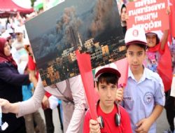 ANKARA / Keçiören Gazze Caddesi’nde başlayan yürüyüş sırasında, “Katil İsrail” sloganları atılırken, engelli bir vatandaş İsrail bayrağı yaktı. Gösteriye katılan Filistin Büyükelçisi Nabil Maarouf, Keçiören Belediye Başkanı Mustafa Ak ile birlikte yürüdü.