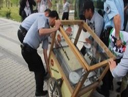 ANKARA / Gıda Tarım ve Hayvancılık Bakanlığı önüne nohut pilav arabalarıyla gelen eylemciler, “GDO’lara da masallara’da karnımız tok” pankartı açarak basın açıklaması yapmak istedi. Eyleme özel güvenlik görevlileri, görevli polisler müdahale etti. Eylemcilerin açmak istediği pankartlar parçalınırken, Greenpeace eylemcilerinden Nejat Dinç, “Pilav arabalarımıza güvenlik görevlileri el koydu. Canları GDO’lu pirinç çekti galiba. Ancak biz onların da Genetiği Değiştirilmiş Organizma yememeleri için eylemlerimize devam edeceğiz” ifadelerini kullandı.