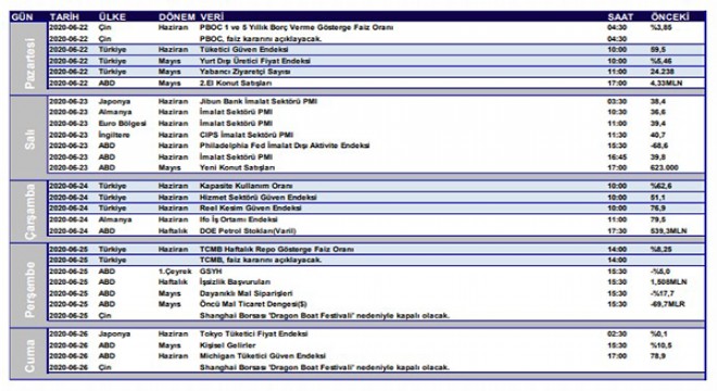 Ayrıca Shanghai Borsası 25-26 Haziran günleri ‘Dragon Boat Festivali’ nedeniyle kapalı olacak.