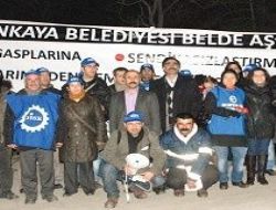 Çankaya Belediyesi’nin iştiraki olan Çankaya Belde A.Ş’de çalışan DİSK’e bağlı Sosyal-İş Sendikası üyesi işçiler, toplu iş sözleşmesi yapmalarının engellenmesi, yasal hak ve alacaklarının ödenmemesi ve yaşadıkları sorunlara karşı oturma eylemi yaptı.