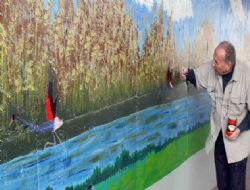ANKARA / Karı koca iki sanatçı, yağlı boyadan Sevgi Çiçeği, Mogan Gölü, Göktürk Gezi Teknesi, Gölbaşı’na ait kuşlar ve ilçenin doğal güzelliklerinin motiflerinin yer aldığı duvar resimlerini Sahil Yolu ile Kaymakamlık Yolunu bağlayan köprülü kavşağa resmediyor.
