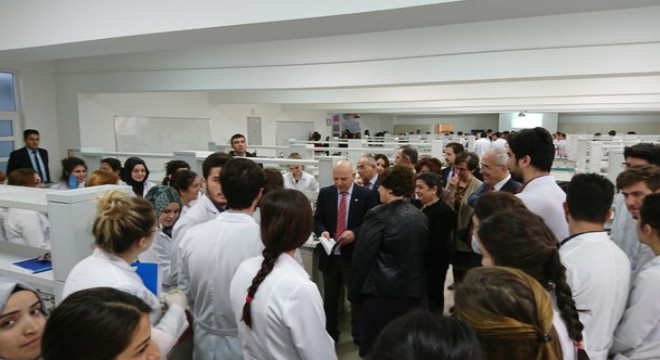 Laboratuvarlar hakkında teknik bilgi veren Özçelikay ise öğrencilere pratik yapma şansı tanıyan laboratuvarı anlattı. Özçelikay, “50 yıl önce yapılan laboratuvarlarımız yenilenirken ilklere de imza attık. Mesleki Beceri ve İletişim Laboratuvarı iletişim becerisi için açıldı. 3 sınav odası yaptık. Kamera ve mikrofon bulunan bu odalarda öğrencilere bir vaka vereceğiz ve eczacı-hasta olarak karşı karşıya gelecek. Vaka üzerinde tartışarak doğruyu bulacaklar. Öğretim görevlileri de video kayıtları üzerinden değerlendirmede bulunacak. Kanada ve Amerika’daki üniversitelerde uygulanan bu öğrenme yöntemi Türkiye’de ilk kez bizde uygulanacak” diye konuştu.