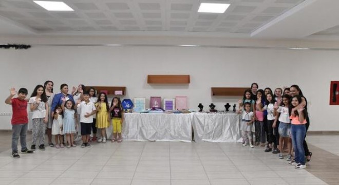 Zübeyde Hanım Aile Merkezi’nde yaz dönemi kurslarında eğitim alan 7-15 yaş grubundaki 100 kursiyer, eserlerini beğeniye sundu. Büyüklerine taş çıkartan minik yetenekler, ziyaretçilerden tam not aldı.