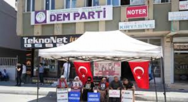 Muş’ta, çocukları terör örgütü PKK tarafından dağa kaçırılan aileler, DEM Parti İl Başkanlığı önünde her çarşamba gerçekleştirdikleri eylemlerine devam etti.