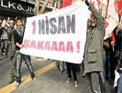 Protestoda polise 1 Nisan şakası