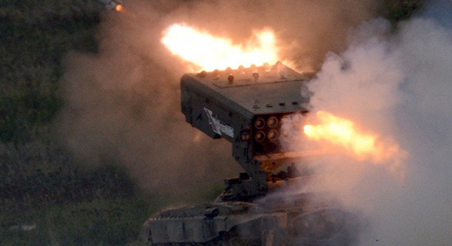 Suriye'de Azez’e öğleden sonra terör örgütü PKK/YPG mevzilerinden atılan ...