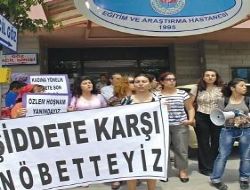Yaklaşık 3 gün önce başlatılan eylemi, hastane önünde basın açıklaması yapan Emekçi Kadınlar Derneği üyesi bir grup kadın devraldı. Kadınlar adına açıklama yapan Mehtap Bayram, Başhemşire Hoşnam’ın 26 Mayısta, Başhekim Yardımcısı Dr. Ömer Eyicil’in şiddetine maruz kaldığını ileri sürdü.