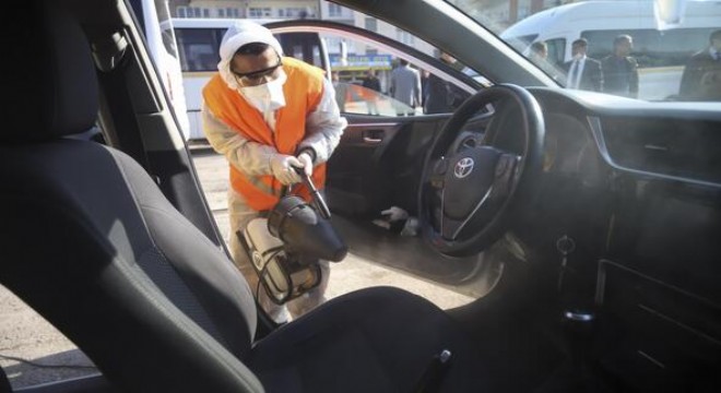 Altındağ Belediyesi, koronavirüs tedbirleri kapsamında İskitler Semt Pazarı'nı Başkent’teki tüm taksi ve servis araçları için dezenfekte istasyonuna dönüştürdü.