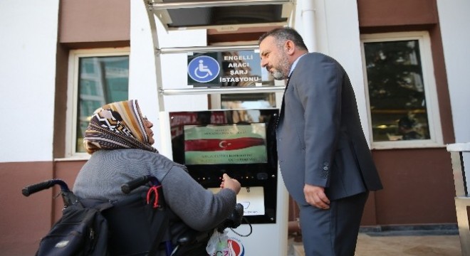 Sincan Belediyesi, akülü tekerlekli araç kullanan engelliler için araçları şarj etme istasyonları kurdu.