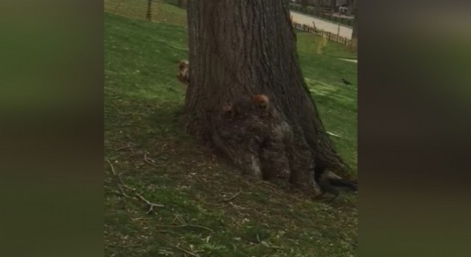 Yeşeren ağaçlar, açan çiçekler, öten kuşlar derken doğa canlandı. İstanbul Emirgan Parkı’nda da havanın tadını çıkaran sincap ve karga renkli görüntüler oluşturdu. Küçük sincap kargaların etrafında dört döndü, birbirlerini kovaladı. Güzel havanın tadını çıkaran sincap kargayla resmen dalaştı. Amatör kamera tarafından kaydedilen görüntüler Sincabın ağaca saklanmasıyla son buldu.