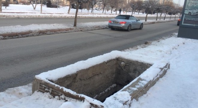 Çankaya’ya bağlı Ahmet Taner Kışlalı Mahallesi’nde, 2853’üncü Cadde’deki su şebekesi bakım ünitelerinin bulunduğu çukurun üzerinin yaklaşık iki haftadır açık olduğunu belirten mahalleli, yetkililerden çözüm bekliyor.