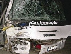Bİr maden işletmesinden iş çıkışı işçileri alan Necati Ay yönetimindeki otobüs ile karşı yönden gelen Sami Güner yönetimindeki dorseli Tır kafa kafaya çarpıştı.