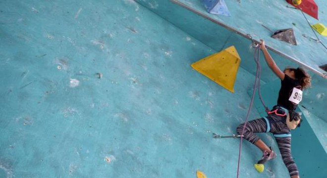 Tırmanış duvarında kıyasıya mücadele