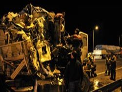 ANKARA / Başkent’ten yüklediği tomrukları, İstanbul’a götermek üzere yola çıkan Abdullah Maral yönetimindeki 06 YJ 741 plakalı kamyon, TEM otoyolu Bolu Dağı Sarıçökek mevkisinde önünde seyreden Hüseyin Köseoğlu idaresindeki 37 HD 827 plakalı tomruk yüklü kamyona arkadan çarptı. Çarpmanın etkisiyle Köseoğlu’nun kullandığı kamyondaki tomruklar, Maral’ın bulunduğu kamyonun üzerine ve yola devrildi. Kazada, araçta sıkışan sürücü Maral, olay yerine gelen itfaiye ekiplerince bulunduğu yerden çıkartıldı. Ağır yaralı Maral, 112 Acil Servis ekiplerince Düzce Atatürk Devlet Hastanesi’ne kaldırıldı. Öte yandan kaza nedeniyle yola devrilen tomruklar, TEM otoyolundaki ulaşımı yaklaşık 1 saat aksattı. Karayolları ekiplerinin temizlik çalışmasının ardından yol kontrollü olarak trafiğe açıldı.ANKARA /
