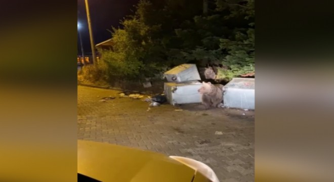 Uludağ da aç kalan ayılar çöp konteynerini devirdi