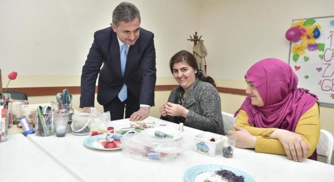 Eğitimi her zaman destekleyeceklerinin altını çizen Köse, kurslara olan ilgiden duyduğu memnuniyeti dile getirerek, “Öğrenmenin yaşı yoktur. Kardeşlerimiz merkezlerimizde yeteneklerini öne çıkararak, becerilerini geliştirerek hem öğreniyor, hem meslek ediniyor, hem de ürettiklerini satışa çıkararak aile bütçesine katkı sağlıyor” dedi. Köse ayrıca kadınların eserlerini satışa çıkarabilecekleri alanlar oluşturacaklarını da sözlerine ekledi. İğne oyasından ahşap boyamaya, takı tasarımdan dikiş nakışa kadar tüm sınıfları tek tek gezerek kursiyerlerin yaptığı el emeği göz nuru ürünleri inceleyen Köse, daha sonra kursiyer annelerin çocuklarının zaman geçirdiği oyun odasında minik öğrencilerle bir araya geldi.